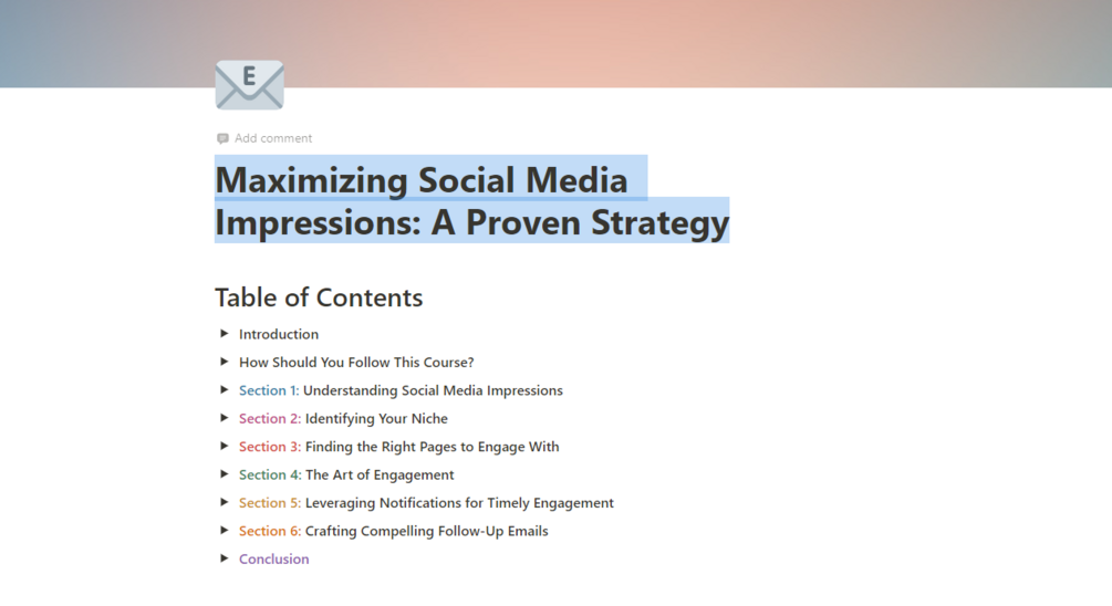 Don't let your social media content be just another drop in the ocean. Elevate your strategy with the Maximizing Social Media Impressions Masterclass and start experiencing unparalleled levels of engagement and visibility. Enroll now and unlock the potential of every post!